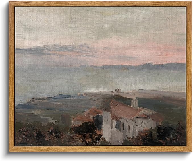 InSimSea Framed Wall Art for Living Room - Vintage Coastal Town Landscape Canvas - Rustic Farmhouse Decor for Office - Retro Room Decorations 9x11in