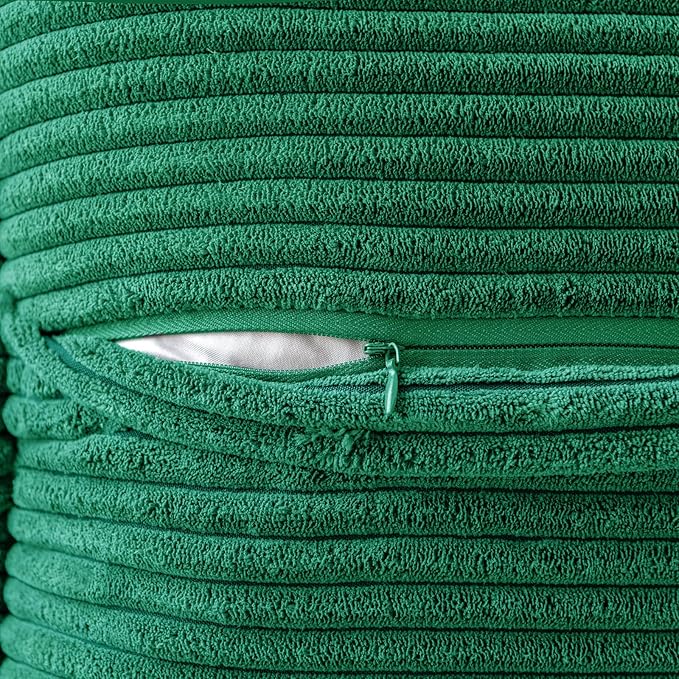 MIULEE Christmas Decorative Throw Pillow Covers for Couch Bed Livingroom 18x18 Inch Set of 2 Emerald Green Boho Accent Throw Pllows Broadside Striped Patchwork Soft Corduroy Pillowcases
