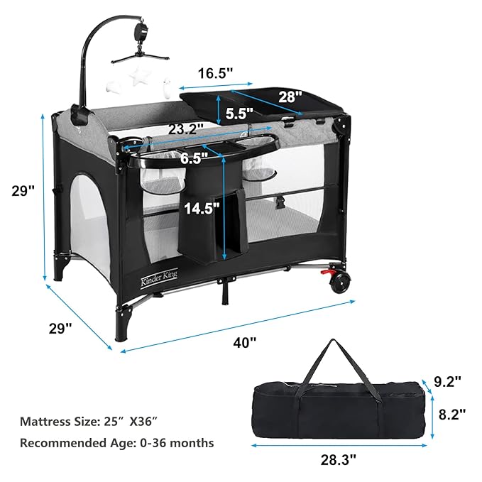 - Portable Travel Design: Equipped with carry bag, suitable for family trips or visiting friend; Indoors and outdoors; The two wheels slide smoothly and quietly; The wheels can be locked with one click; The diaper organizer for daily necessities