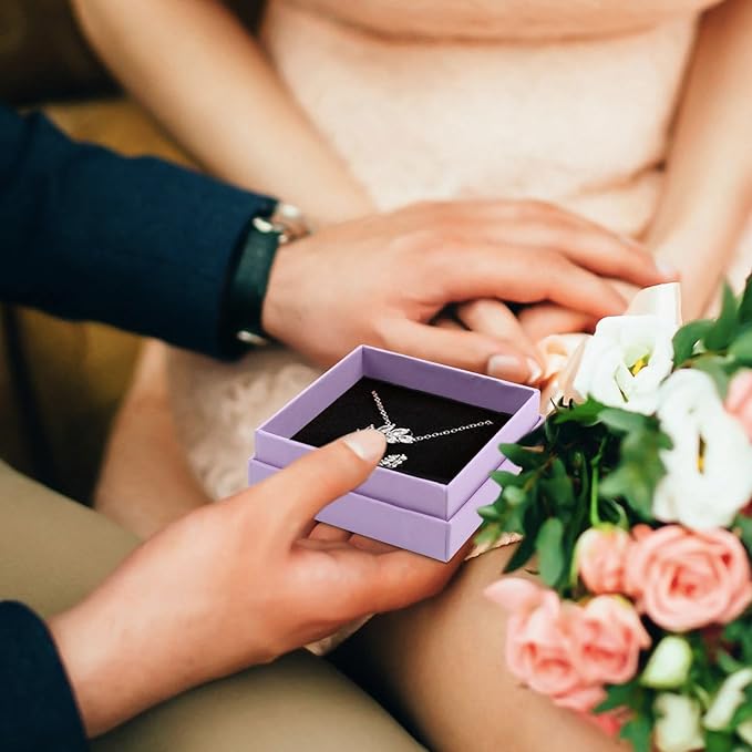 Gift Box Necklace Earring Ring Box Gift Box,12 Pieces Square Cardboard Jewelry Gift Boxes,Cotton Filled Cardboard Paper Jewelry Box Gift Case (3.5x3.5x1.25 Inches) (Purple)