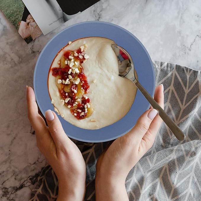 - 🌾【More Thick & Large Capacity】The wheat straw bowls are designed with thicker and smooth round edges which gives you a good touch and prevent deformation.Our wheat straw bowls set has ideal shape and antiskid stripe which avoid spilling your food. Additionally, it is perfect for cereal, salad, fruit, rice, noodle and so on.