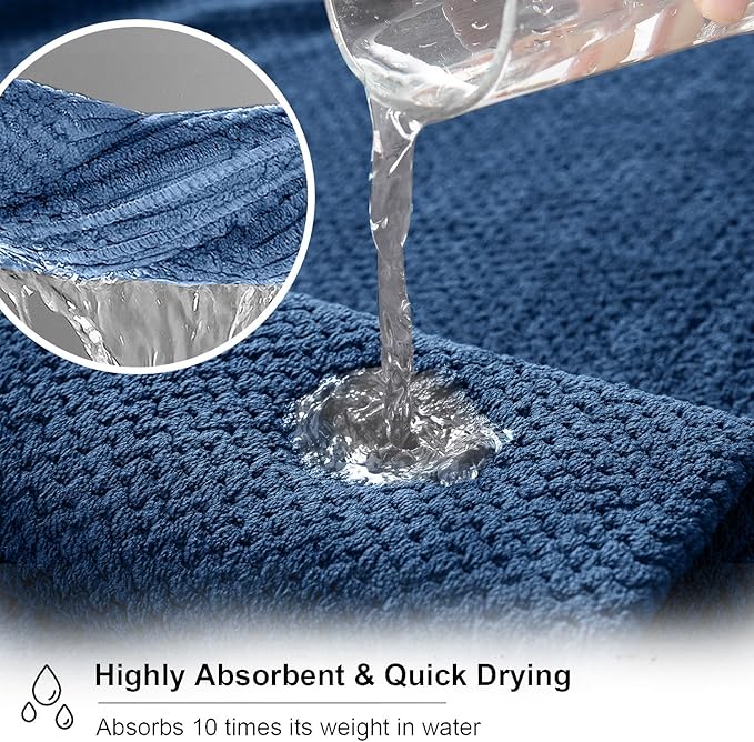 8 Piece Large Navy Family Bath Towel Set-2 Oversized Bath Towel Sheets,2 Hand Towels,4 Washcloths-600GSM Soft Highly Absorbent Quick Dry Beach Chair Towels Woven Towels for Bathroom Hotel and Spa