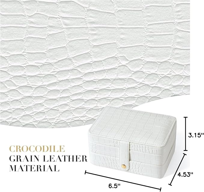 - PORTABLE TRAVEL JEWELRY BOXES-The travel jewelry organizer With 6.3*4.33*3.15 inches size, Compact enough to fit into a drawer or sits beautifully on your dresser, nightstand, bathroom counter or vanity, saves lots space to make your room looking more neatly. it also keeps jewelry in order and safe from getting tangled or damaged during travel.