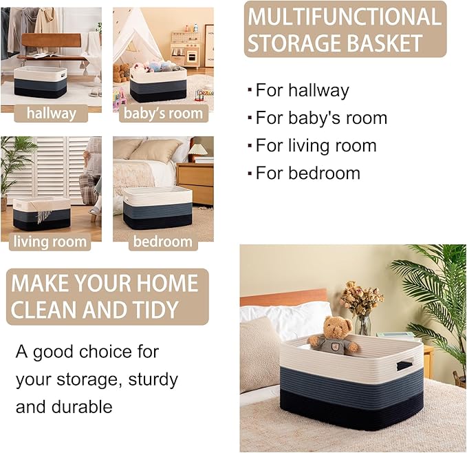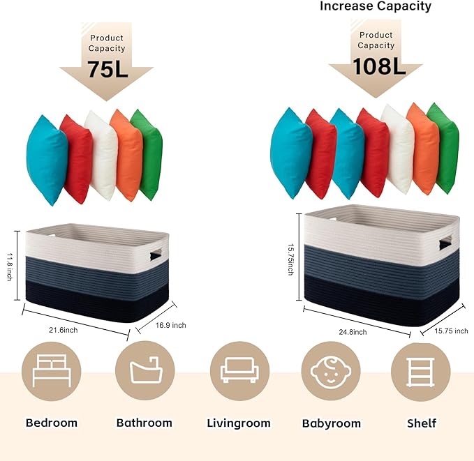 - Decorative Blanket Storage for Living Room:This rectangular blanket basket is more stable and easier to restore its sahpe after you receive the package. The 22’’ x 17’’ x 12’’ large storage basket can also used to store blankets, pillows, cushions, toys, clothes and towels