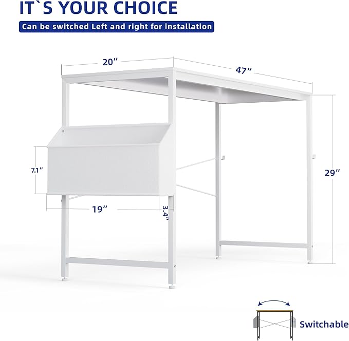 - Convenient Storage -- The side storage bag and headphone hook are added to hold your office supplies and hanging your headphone, bag, and other gadgets. Help you better allocate desktop space.