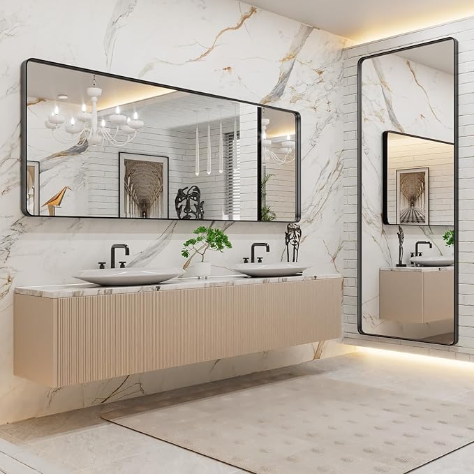 LOAAO 84x32 Inch Black Metal Framed Bathroom Mirror for Wall, Matte Black Bathroom Vanity Mirror Farmhouse, Large Rounded Rectangle Mirror, Anti-Rust, Tempered Glass, Hangs Horizontally or Vertically