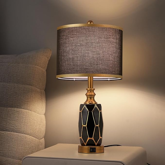 - 3-Way Dimmable Touch Control Design:The metal base of the lamp body has a built-in sensitive sensor, you can click any part of the base metal to adjust the 3-level brightness and turn it on/off. he base of the table lamp is a gold-plated metal finish base,which makes the product high-end, strong, stable and safe. The ceramic part adopts the rare porcelain clay high-temperature firing process, and the surface is smooth and clean.