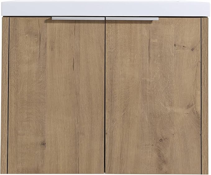 Goujxcy 24" Wall Mounted Bathroom Vanity with Sink, Modern Floating Bathroom Cabinet with White Resin Wash Basin & Storage Cabinet, Soft-Close Door Plywood Hanging Bath Room Cabinet (Imitative Oak)
