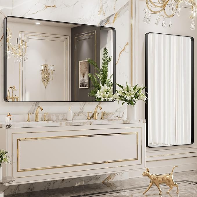 - 【Clear Reflection & NO Distortion】: LOAAO bathroom vanity mirror is designed with HD float glass to deliver a clear reflection with no distortion; clear lines; simple modern design