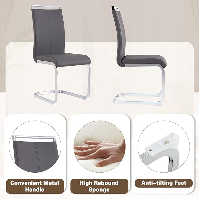 - Comfortable Modern Chairs: The 4 modern dining chairs upholstered in premium faux leather and offering a soft and comfortable seating experience; the ergonomic shape design provides excellent support for your whole body while the leather upholstery adds a touch of luxury;these chairs are easy to clean ideal for everyday use