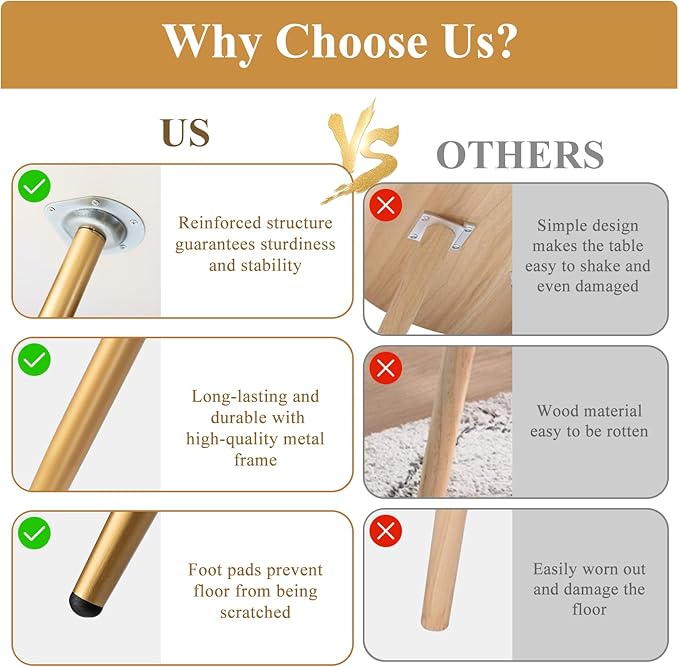 - Stable and Durable: The table top and legs are connected with reinforced metal structure, which guarantees stability and load capacity.The table is equipped with foot pads to protect the legs of the table from being worn and the floor from being scratched