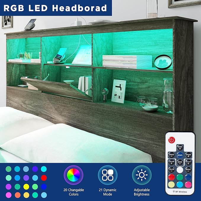 - Charging Station & RGB LED Lights – Built-in 2 AC outlets + 2 USB ports (ETL/UL certified) plus RGB LED headboard lighting with 20 colors, 21 modes, and remote control create the perfect farmhouse bedroom ambiance.