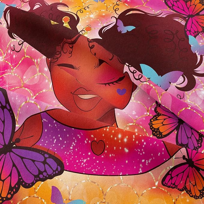 Tailor Shop Kawaii African American Black Girl Comforter Set Pink and Red Bedding Sets for Girls Kids Cute Magic Black Girl Bedding Set Mermaid Butterfly Comforter Twin Size with 1 Pillowcase…