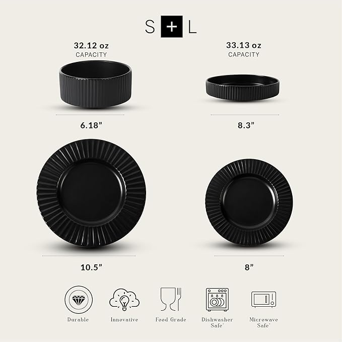 - 16-Piece Service for Four: The Lusso set includes four 10.5in. dinner plates, four 8in. salad plates, four 32.12 fl.oz soup bowls with a 6.18in. diameter, and four 33.13fl.oz pasta bowls with an 8.3in. diameter. This comprehensive dinnerware set caters to all your dining needs.