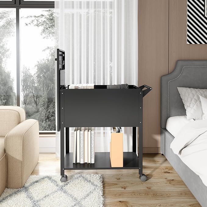 Metal Mobile File Cabinet, Rolling File Cart File Box with Sliding Cover and Wheels, Rolling Filing Cabinet Locking Tool Storage Cabinets for Home Classroom Office