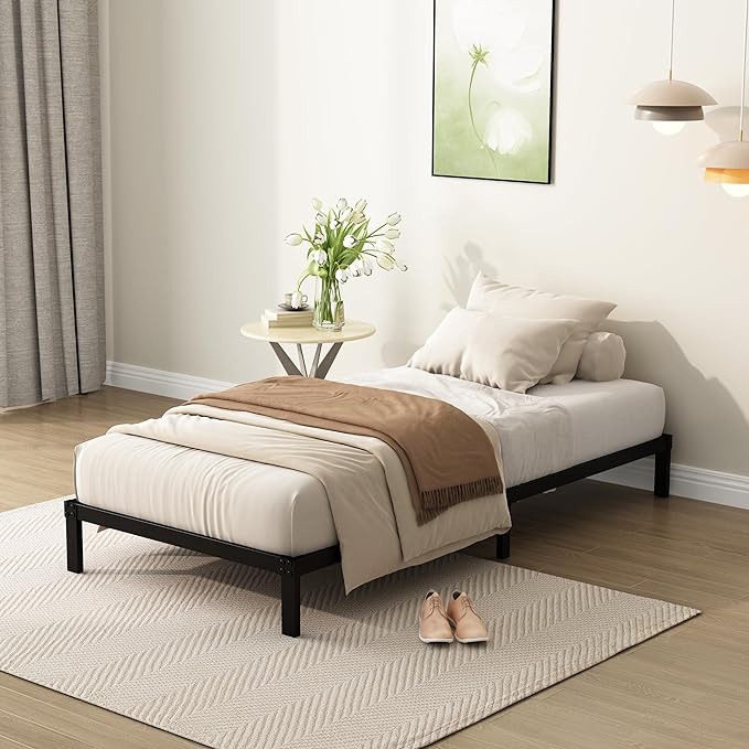 - Minimalist Design: The minimalist design goes well with other bedroom furniture and fits perfectly in any bedroom. Black powder-coated metal adds an exquisite look to this low platform bed frame twin xl.