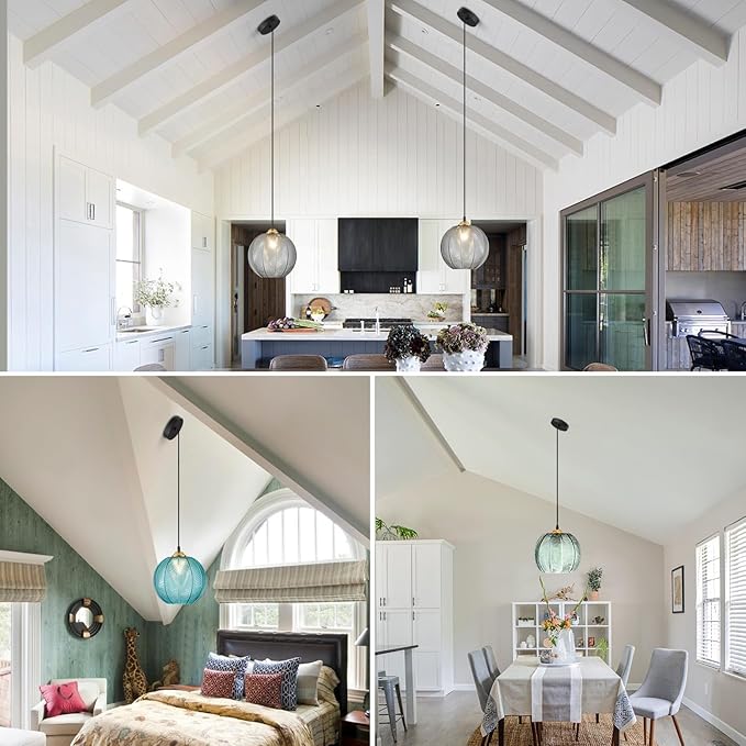 - Perfect Application: This pendant light works with industrial, modern and transitional designs.The retro textured glass hanging lights are versatile and can be used in a variety of different application scenarios.From farmhouse pendant lighting for kitchen Island,sink,dining table to pendant lights for bathrooms,foyers, stairways. It's great in living room,restaurant,coffee shop,office,bedroom,bedside,study, corridor,entrance, hallways,bar, hotel