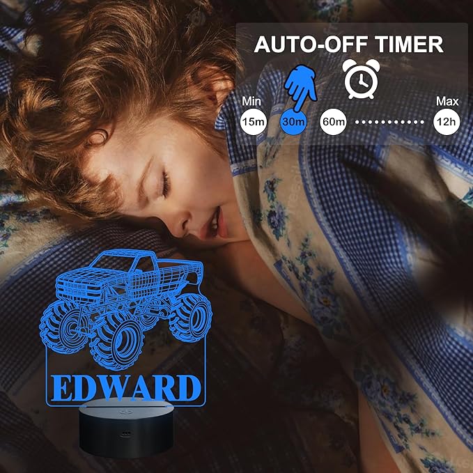- Remote Control & Smart Touch: The 3D hot wheel truck night light comes with remote control and touch control to adjust the 16 different colors as you like. With the remote control, the monster truck night light can be fixed in static or gradient color to decorate children's room, living room, bedroom, office, etc.