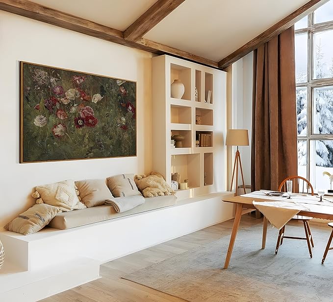 - Classical Wall Art Decor : Titled "A Bed of Poppies", this painting is the work of American painter Maria Oakey Dewing, known for her depictions of flowers. This vintage wall art add an elegant and nostalgic touch to any space, making them a perfect choice for art enthusiasts and classical painting lovers alike.