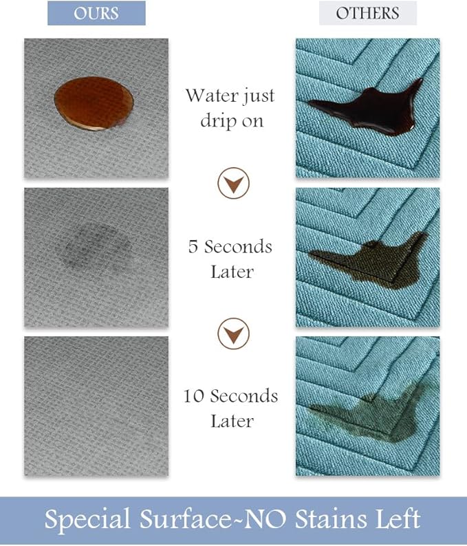 - Absorbent & Stain Resistant: Its specially engineered nano-porous smooth surface instantly absorbs dripping water, leaving no conspicuous watermarks or stains. Whether stepping out of the shower or washing your hands, you can trust this super absorbent bath mat to keep your space clean and safe.