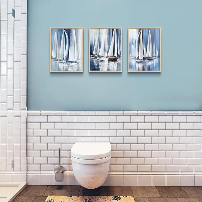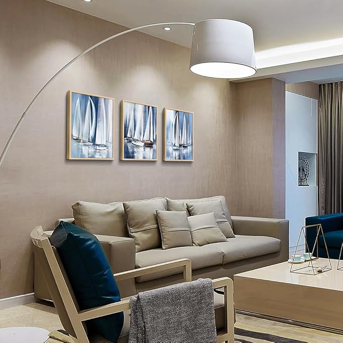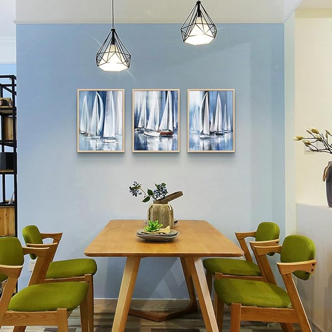 Wall Decorations For Living Room Natural Wood Framed Wall Art For Bedroom Office Wall Decor Wall Hanging Decor Abstract Seascape Sailboat Artwork For Wall Painting Print Pictures Home Decor 3 Piece