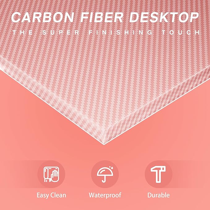 - Super Gaming Style: The amazing carbon fiber material covers the desk, even including the bottom baffle, which makes the whole table full of fabulous gloss and delicate touch. Plus the detail dark red pattern mezzanine and unique z shaped chair legs. Bring you the double enjoyment of vision and touch.