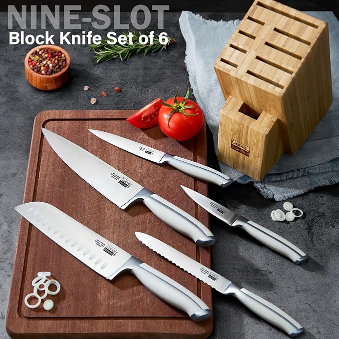Cooks Standard Kitchen Knife Set with Block 6-Piece, Stainless Steel Forge High Carbon German Blade with Expandable Bamboo Storage Block for Extra Slots, White