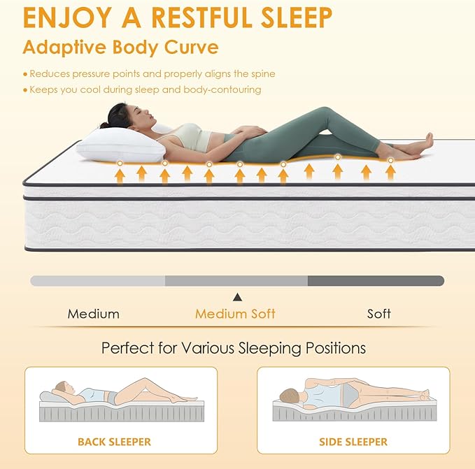 - Individually Wrapped Spring Design: This Full-size inner spring mattress features an elastic coil core to properly support your body. The durable mattress supports edge depressions and insulates movement to help reduce distractions and noise from the partner's tossing and turning