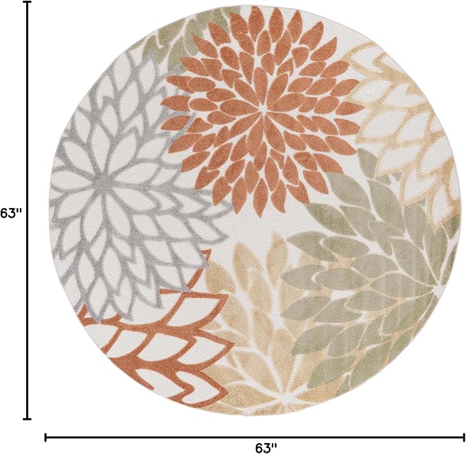 Nourison Home Aloha 63x63 Outdoor Polypropylene Fabric Rug in Ivory/Multi-Color