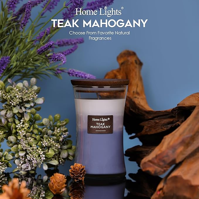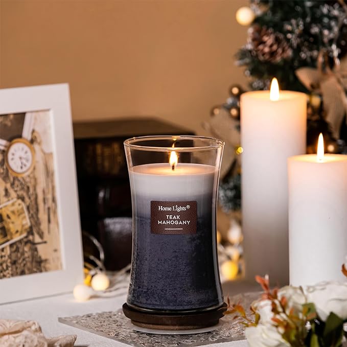 HomeLights 3-Layer Candles for Home Scented, 21.52 OZ Natural Soy Wax Scented Candles Burns Up to 100 Hours, Large Jar, Teak Mahogany