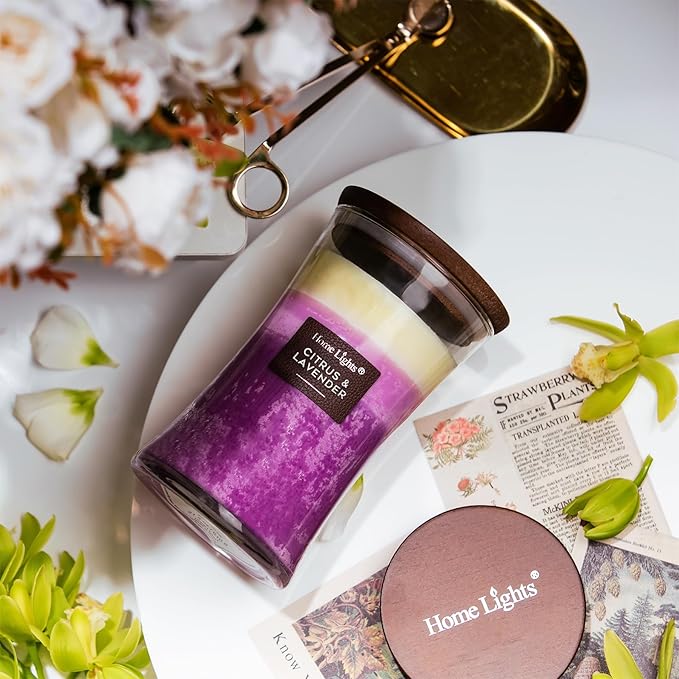 HomeLights 3-Layer Candles for Home Scented, 21.52 OZ Natural Soy Wax Scented Candles Burns Up to 100 Hours, Large Jar, Citrus & Lavender