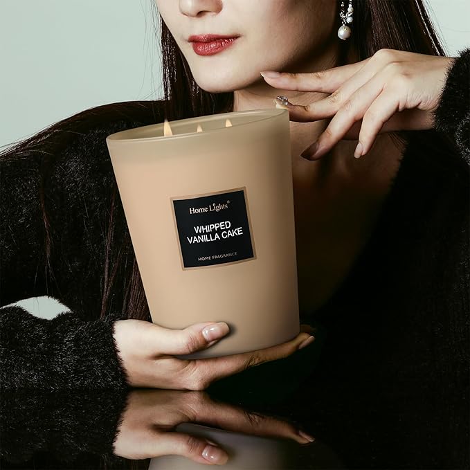 HomeLights Scented Candles, Big 33.3 oz for Home, Natural Soy Aromatherapy Candles, Smokeless Long Lasting 130 hrs with 3 Cotton Wicks, Candles Gifts for Women & Men, Whipped Vanilla Cake