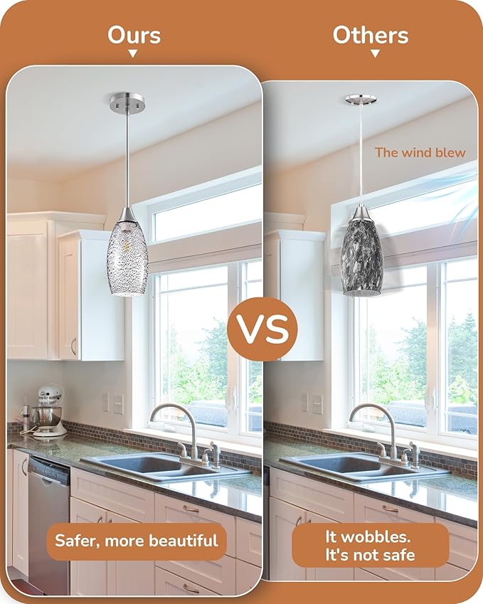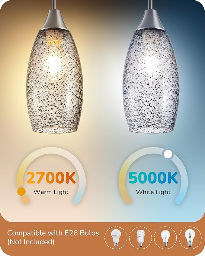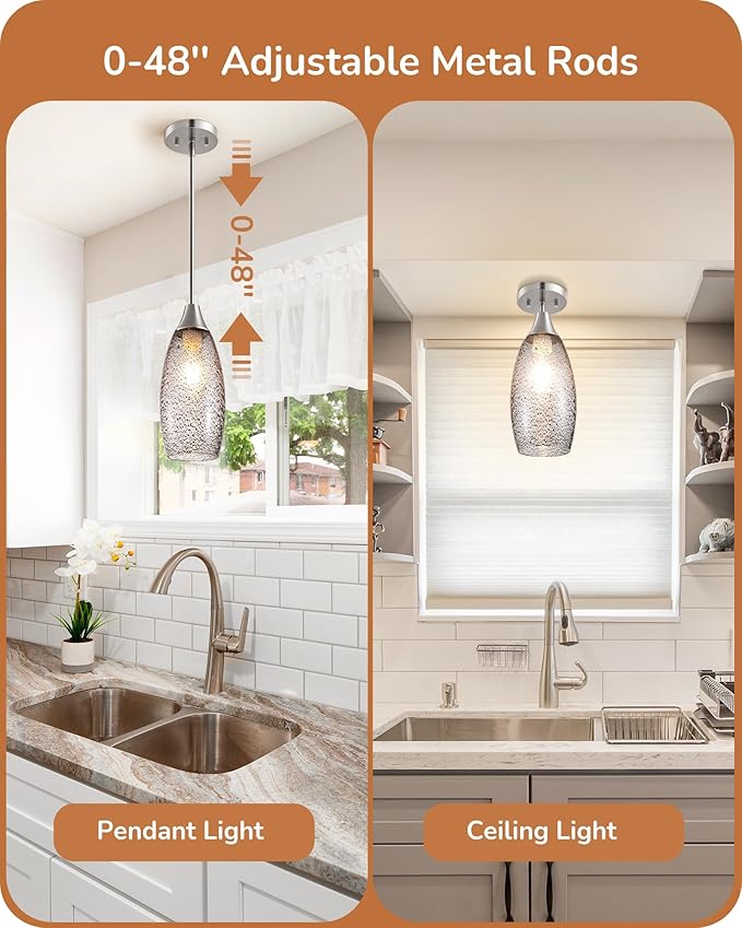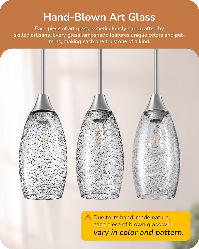 - 【Stylish for Any Space】This handmade glass pendant light boasts a clean, modern design that seamlessly blends with any decor style; ideal for kitchen islands, bars, kitchen sinks, bathrooms, and dining areas, adds a touch of elegance to your space