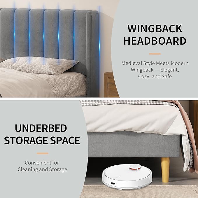 - Elegant Wingback Design: Combining medieval and modern styles, the wingback bed frame full offers a comfortable backrest for relaxation. It adds an elegant and unique touch to your bedroom decor, enhancing the overall aesthetic appeal of your space