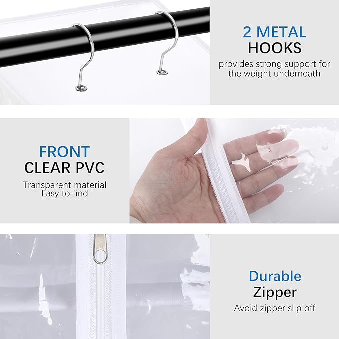 - 【Easy to Access】The see-through window design of the closet hanging shelves allows you to easily find the items you need, so it’s very convenient to put in or take out the clothes from the closet organizer hanging.