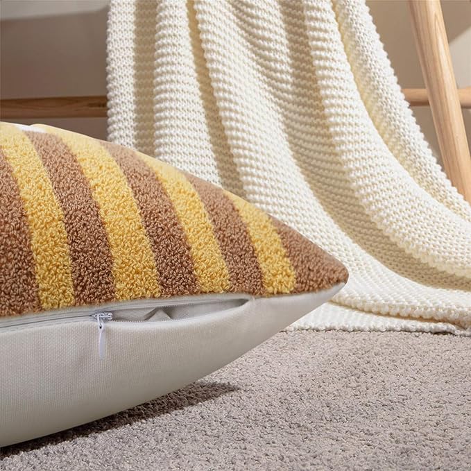 - 【FABRIC AND SIZE】The front of this abstarct pillow cover is made of 45% cotton + 45% polyester + 10% viscose, the backside is made of 100% cotton. Measures 18x18 inches. Exquisite workmanship enables tufting part dense soft and aesthetic. The 3D effect with the tufting technic makes these decorative pillows so distinctive