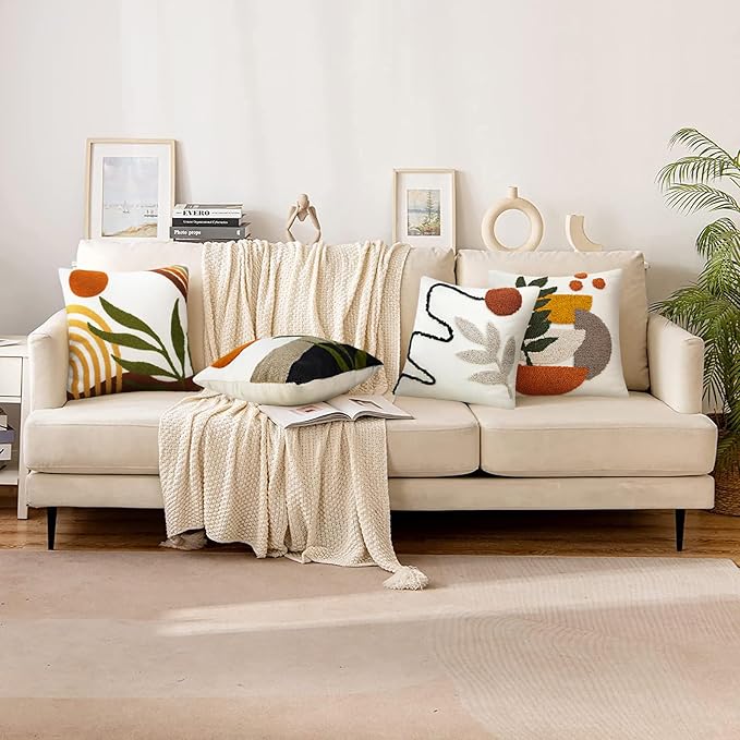 Merrycolor Boho Abstract Pillow Covers 18x18 Tufted Mid Century Modern Throw Pillows Textured Aesthetic Pillow Cases Bohemian Boho Pillows Decorative Throw Pillows Cover for Bed Couch Sofa