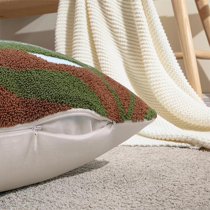 - 【FABRIC AND SIZE】The front of this leaf pillows decorative throw pillows are made of natural cotton and acrylic high end woven embroidery,the backside is made of 100% cotton.The 3D effect with the tufting technic makes these pillow covers so distinctive.You will get 1 piece of 18 x 18 inch/ 45 x 45 cm abstract pillow cover.