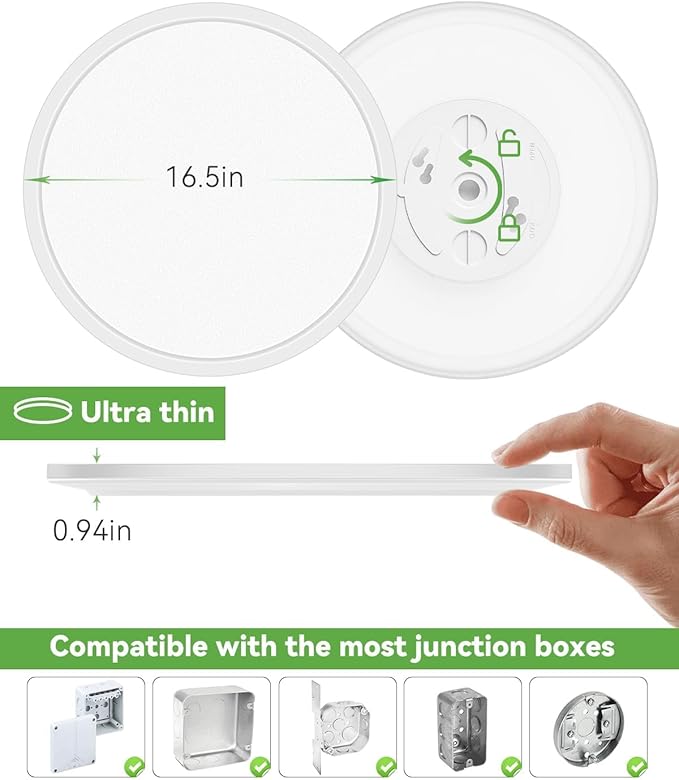 - Easy Installation : Universal base design make close to ceiling light fixtures is compatible with most Junction Boxes, Clear instructions included, just take 3 easy steps, and the bright bedroom lights for ceiling can be fitted quickly in a few minutes. Can be done by yourself without professional installers.【Warm Tips】This lighting fixture's ceiling only works with regular ON/OFF wall switches.