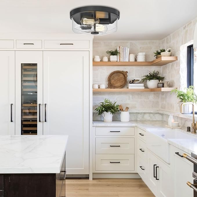- 【Flush mount Design& Vintage Style】: This ceiling light is featuring a unique glass shade and a classic black matte metal base. Greatly create a farmhouse and retro look in your home. , which offers added style and beauty for your living space, making vintage and stunning embellishments for your home decoration.