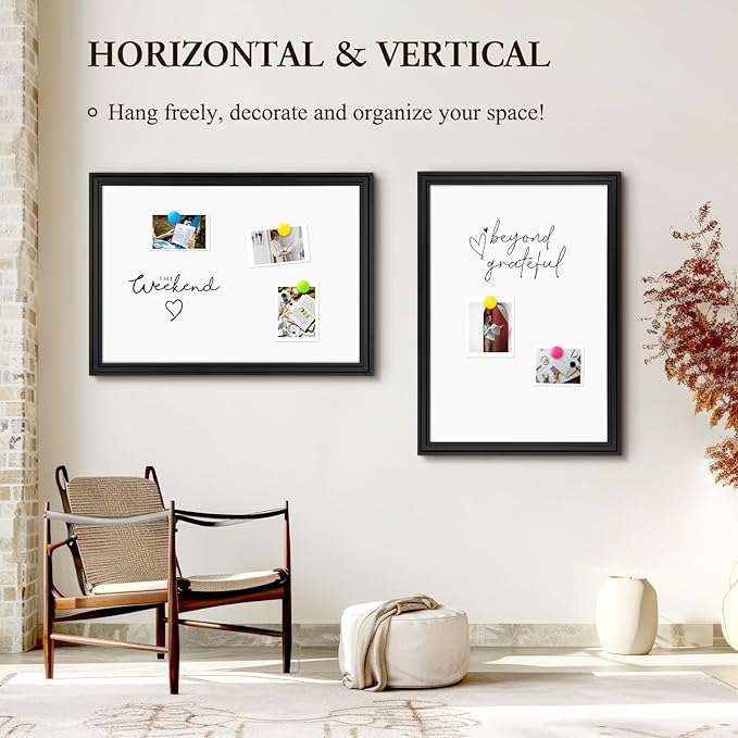 4 THOUGHT Dry Erase Board, 18 x 24 in Magnetic Whiteboard Black Vintage Wood Frame Wall-Mounted White Board Decorative Notice Board for School, Office, Home, Kitchen with 6 Magnets 4 Markers 1 Eraser