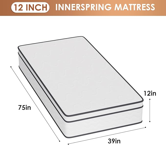 - Individually Wrapped Spring Design: This Twin-size inner spring mattress features an elastic coil core to properly support your body. The durable mattress supports edge depressions and insulates movement to help reduce distractions and noise from the partner's tossing and turning