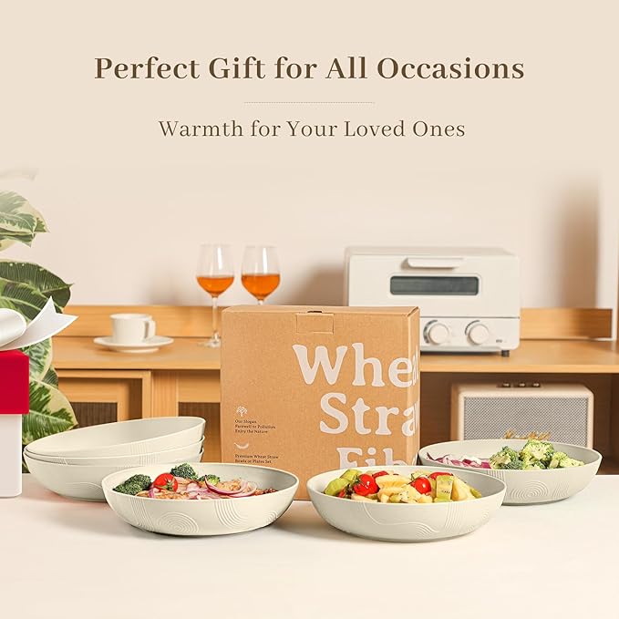 - UNIQUE TEXTURED DESIGN: Each wheat straw bowl has a textured design on the side, highlighting fashion and elegance.The big bowl is suitable for salads,serving, and can also be used as a plate.Our serving bowls come in premium colors to decorate your kitchen.