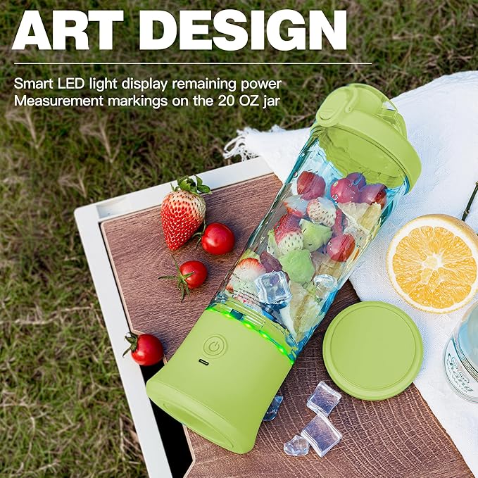- 【Diamond Jar Design & Safety Protection】Built-in 12 smart LED indicators display remaining power. Portable diamond pattern design is made from eco-friendly, food-grade non-toxic PCTG material, BPA free. This portable blender is built in safety magnetic sensing switch prevent blender from overheating.