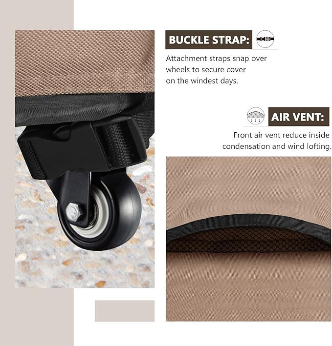 - Full coverage design avoids the exposure of cooking equipment in the sun makes your gas grill always look like new.