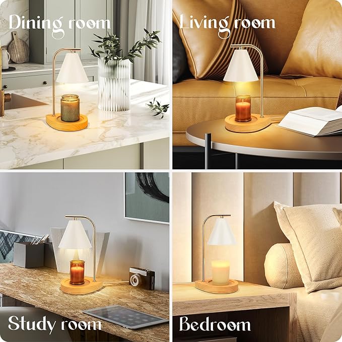 - 【Elegant home decoration】Transform your home decor with our stylish candle wax warmer! Retro wooden base and lampshade, metal body, blending classic and modern elements to create a unique and stylish look. Whether you're using it in your bedroom, living room, study, office, yoga room, or any other space, this wax melts warmer serves as both a decorative and functional lighting piece, adding a touch of elegance and sophistication to your home decor