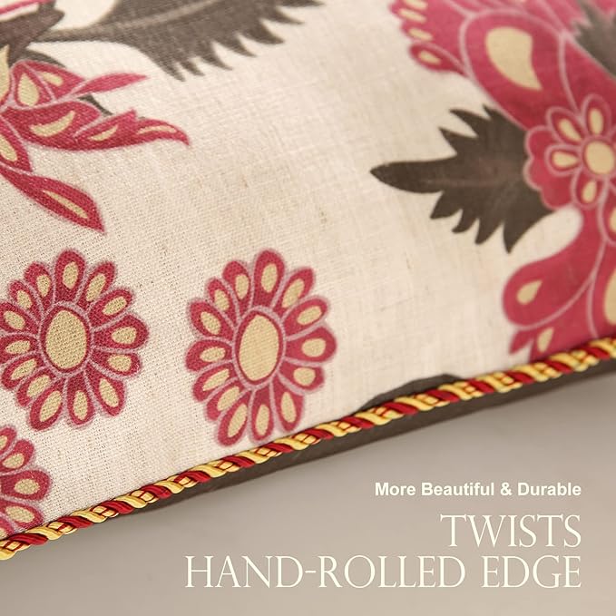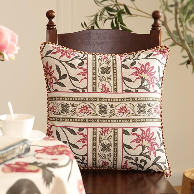 patdrea Designer Throw Pillow Covers 18X18 Inches,Vintage Red Linen Pillowcases with Leaves and Flower Pattern Pillows Cover for Couch,Decorative Square Cushion for Living Room Outdoor,Set of 2
