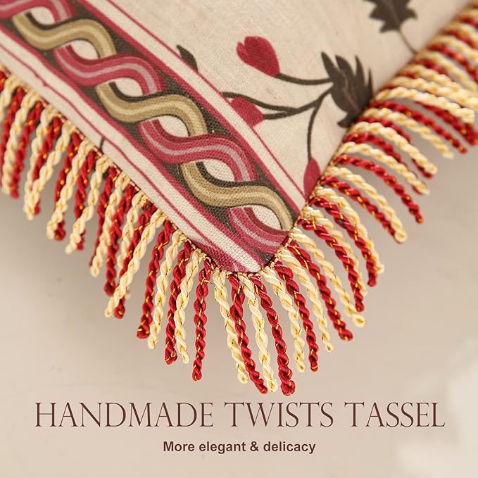 patdrea Designer Throw Pillow Covers 12"x20",Vintage Red Flying Bird Pattern Linen Pillowcases with Tassel Edges Pillows Cover for Couch,Decorative Lumbar Cushion for Bed Outdoor Car,Set of 2