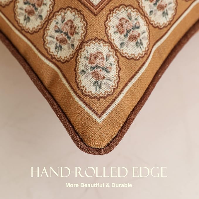 patdrea Designer Vintage Floral Throw Pillow Covers for Couch Set of 2,Brown Linen Pillowcases with Bird and Rose Pattern Decorative Square Cushion for Bed Living Room Outdoor Cafe Car,18"x18"