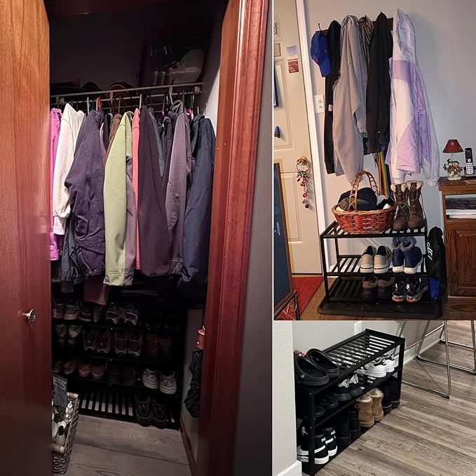 - 𝐒𝐩𝐚𝐜𝐞-𝐬𝐚𝐯𝐢𝐧𝐠 & 𝐕𝐞𝐫𝐬𝐚𝐭𝐢𝐥𝐞: Let you get rid of shoes with nowhere to put them in the entryway, making the home more clean and tidy. (Bamboo wood is suitable for almost any home decoration. It can be used as a book shelf or flower rack in the living room or bedroom, and it can also be used to put towels and toiletries in the bathroom.) A stackable shoe rack is a great solution to keep your entryway, hallway, closet, dormitory, patio, living room, mudroom, and garage away from the mess.